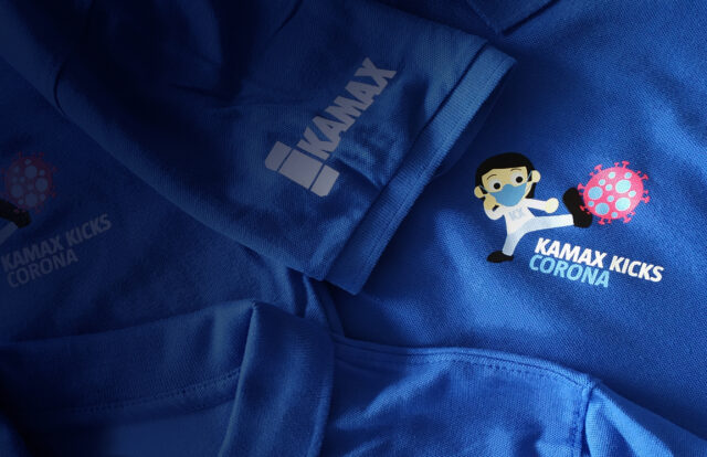 Na jaře jsme vyhlásili kampaň „KAMAXkicksCorona“. Na našich plakátech a tričkách [viz fotografie] rovněž viditelně dáváme najevo naše odhodlání vymazat COVID-19 z našich životů.