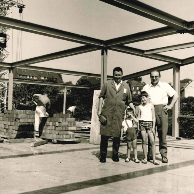Mladý André Casel (uprostřed vpravo) se svým otcem a zakladatelem skupiny Robertem Schröderem