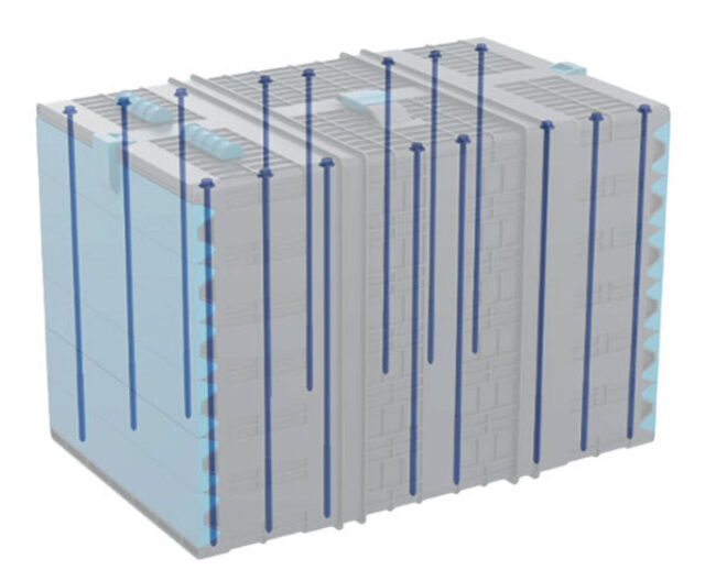 Przezroczysty akumulator pojazdu elektrycznego z zainstalowanymi wysadzanymi śrubami KXpanded